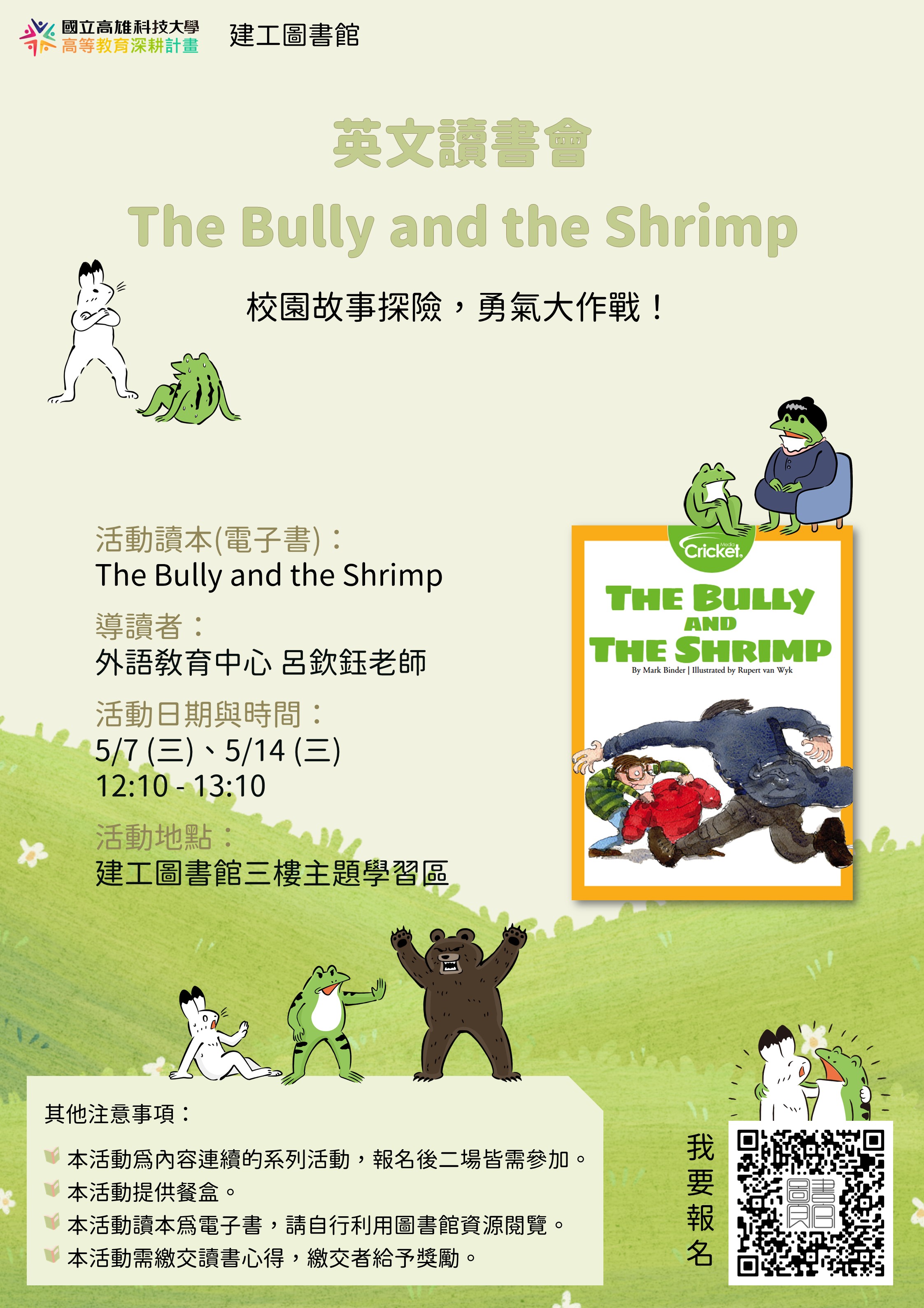 | 英文讀書會活動-The Bully and the Shrimp(第一場) | 讀書會 |