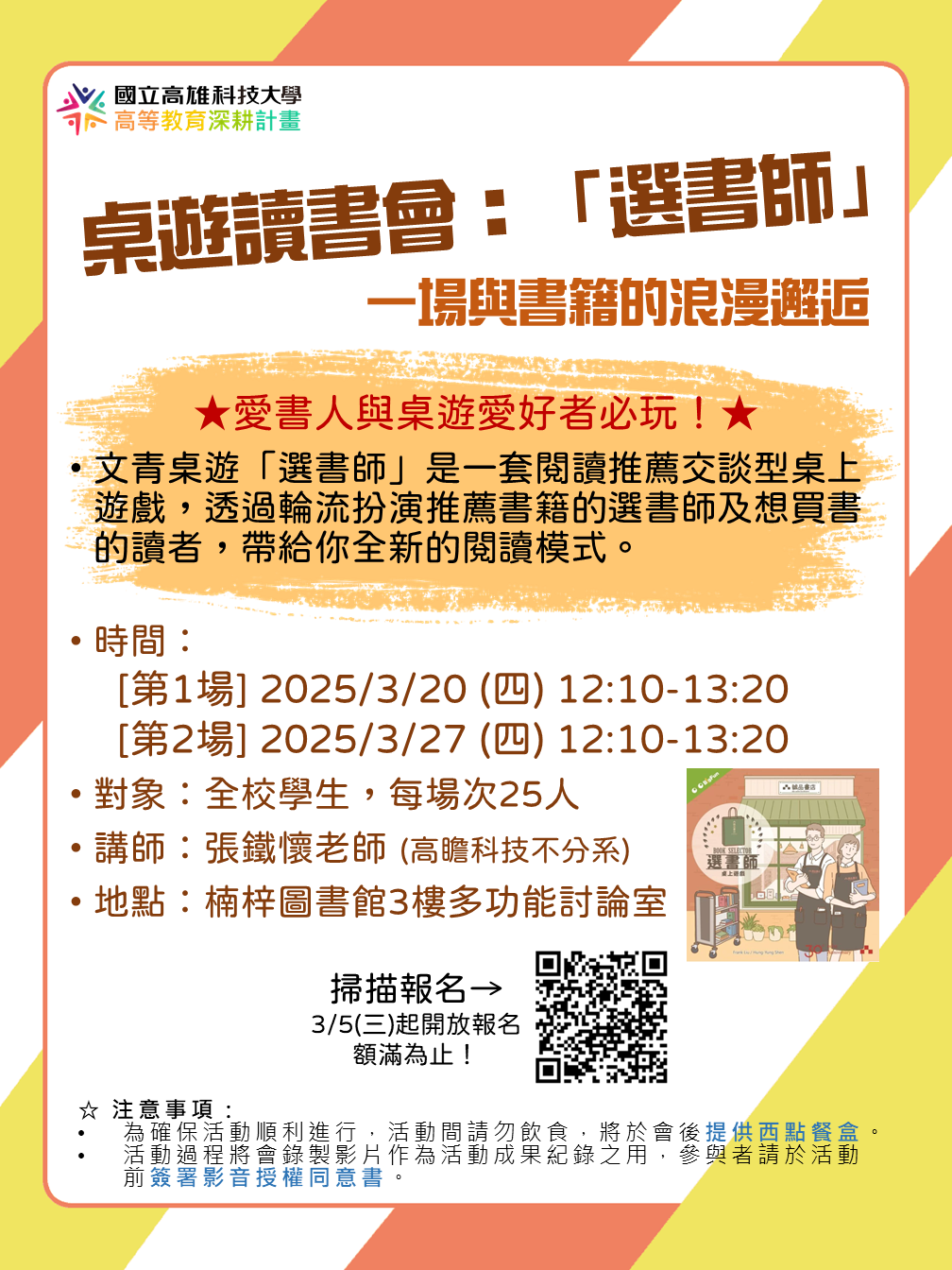 | 桌遊讀書會:「選書師」(3/20場次) | 讀書會 |