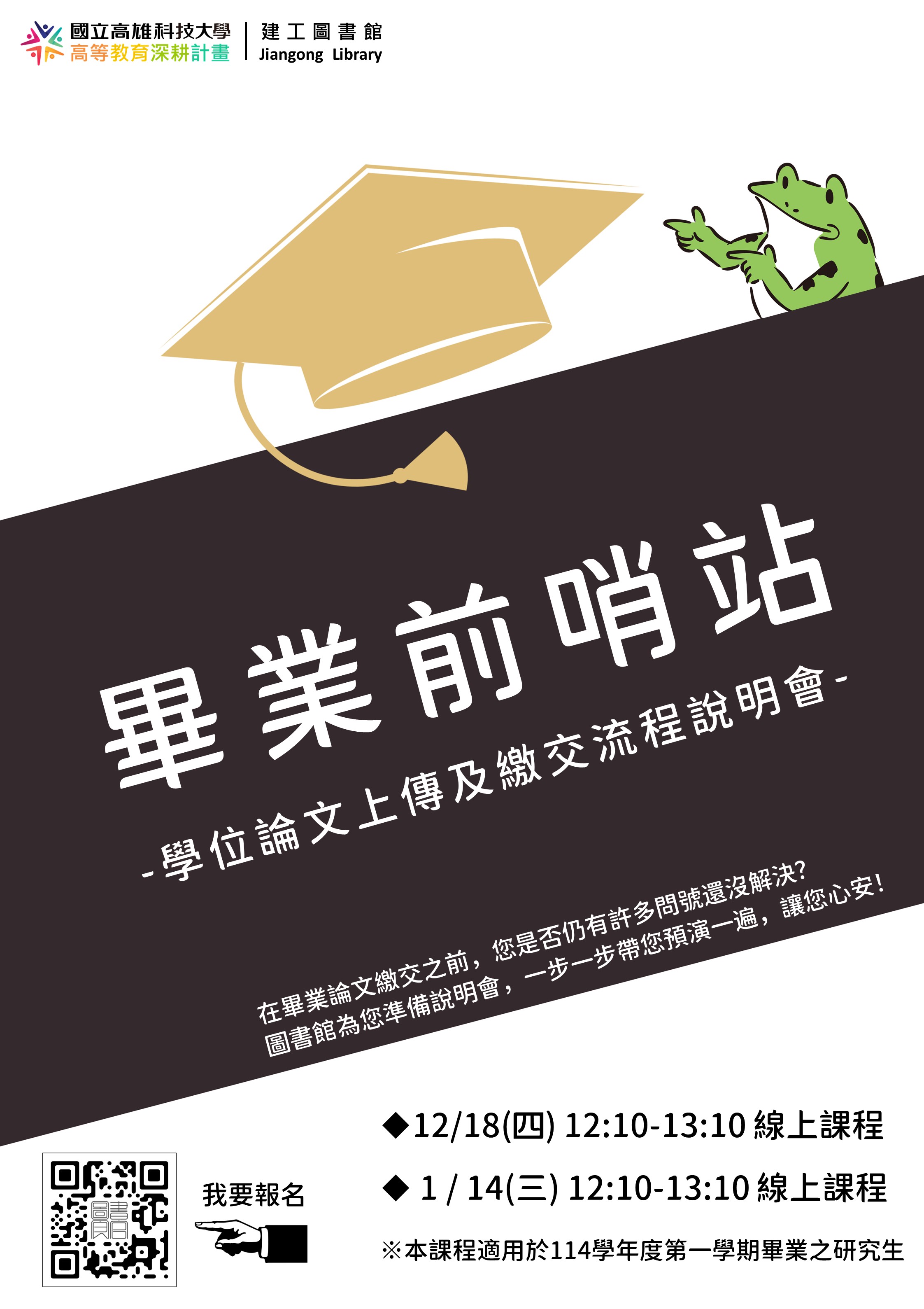 | 【建工圖書館】畢業前哨站-學位論文上傳及繳交流程說明會(線上) | 資源利用 | 論文說明會 |